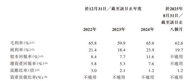 毛利率方面,2022年~2024年及2025年前八个月的毛利率分别为65.8%、59.9%、65.6%与62.6%,呈现“V型”波动。核心业务的盈利能力方面,资讯服务同期的毛利率依次为68.3%、63.3%、74.7%与71.7%。